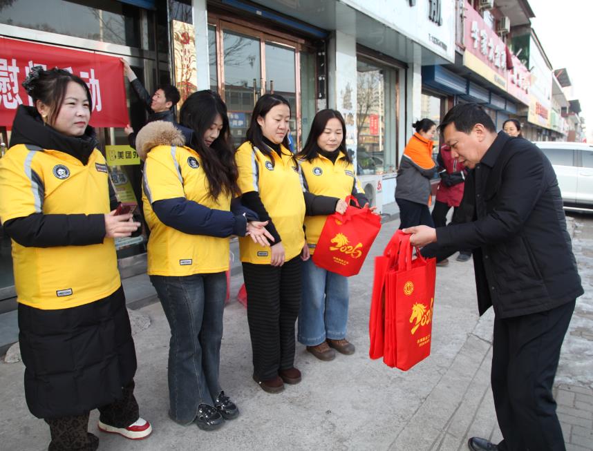又是一年春将至,最是岁寒情暖时。在第二个“工会服务户外劳动者日”暨新春佳节来临之际,洪洞县总工会开展了一场温馨的慰问活动,为寒冬中依然坚守岗位的户外劳动者送上新春对联、户外手套等慰问品,传递“娘家人”的关怀与祝福。
